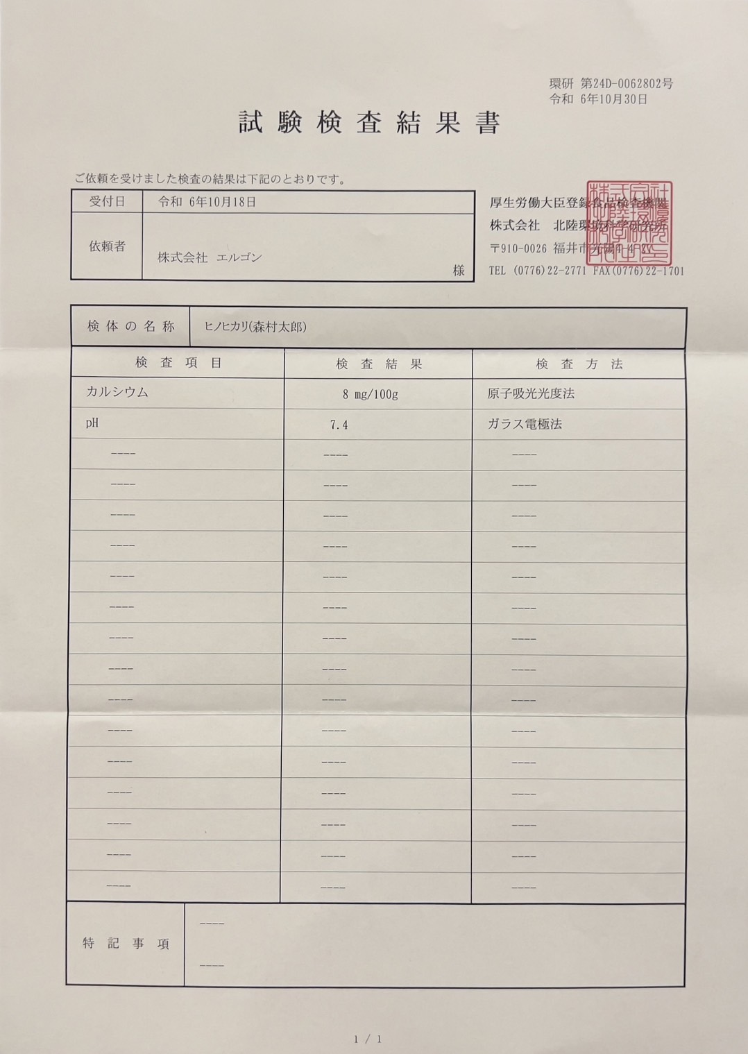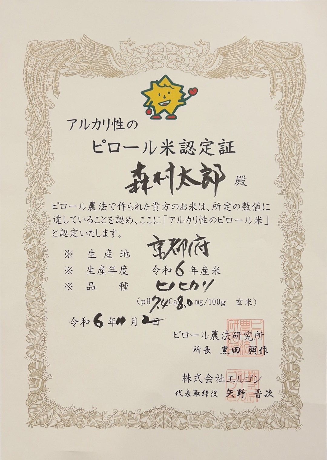 伝田郷で作られたピロール米は、厳正な検査を受けた結果「アルカリ性のピロール米」として